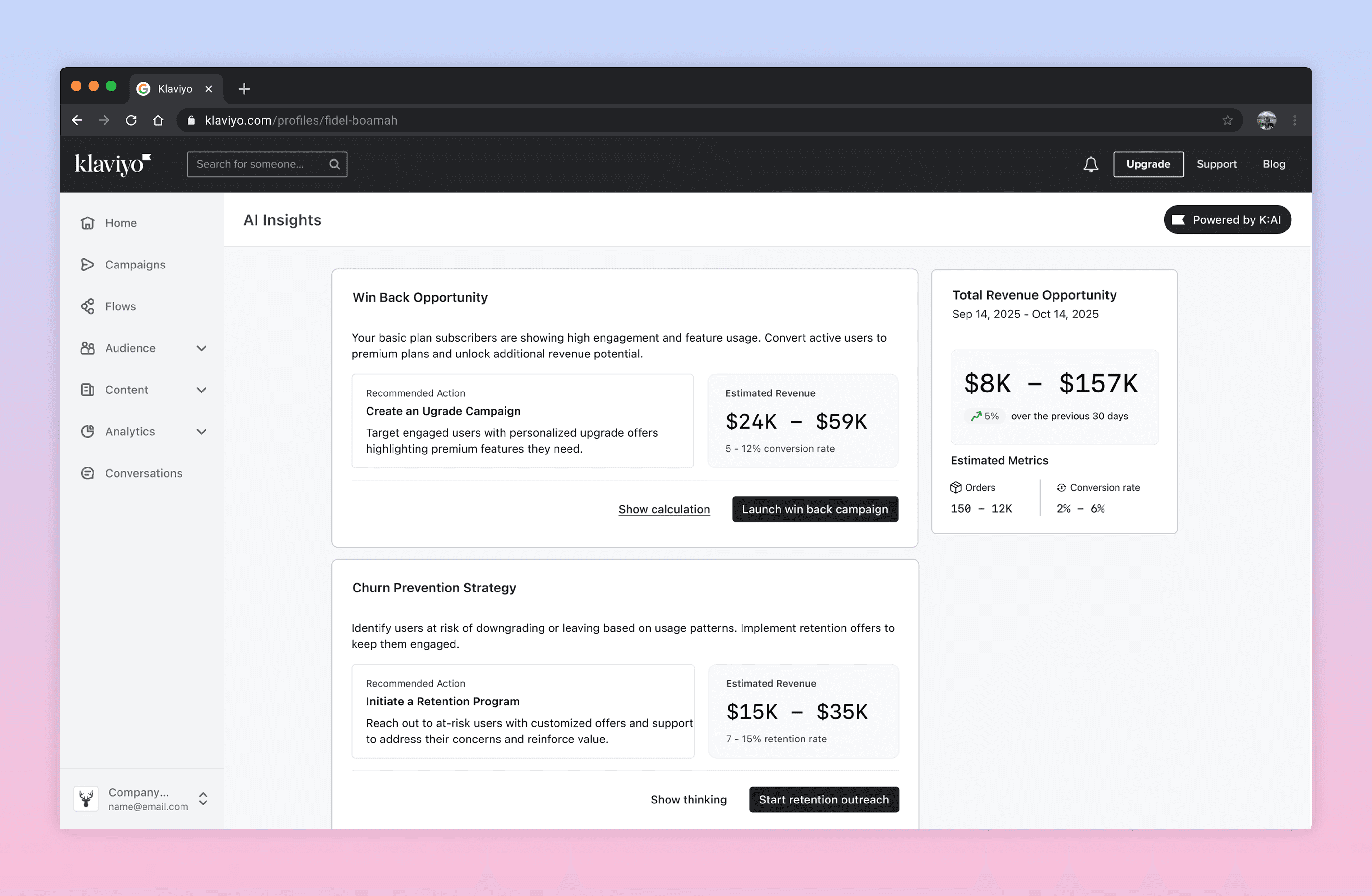 These outcomes shaped the AI Insights roadmap, creating a scalable framework for how Klaviyo uses AI to turn data into growth.